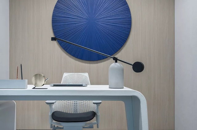 然后走進部門辦公室,秘書、財務、行政辦公室在裝飾陳設上色調簡潔統一,風格趨于穩重。根據表盤來設計的墻面裝置藝術品,寓意時間寶貴,珍惜和合理利用每一分每一秒。